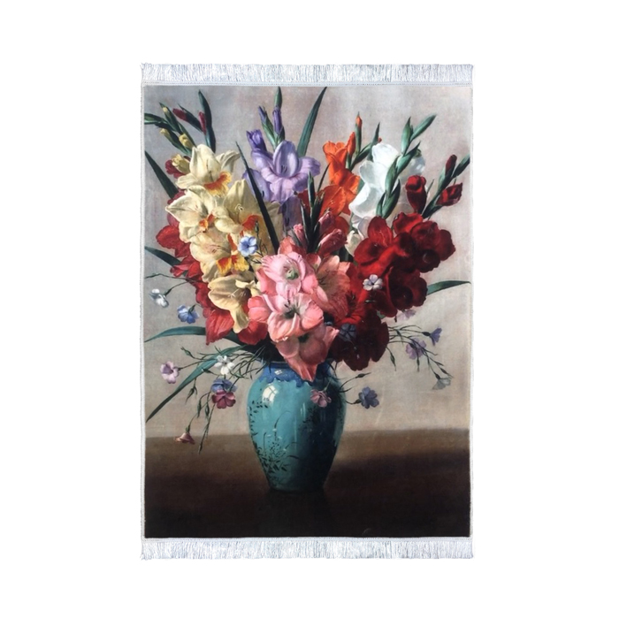 تابلو فرش طرح گل و گلدان کد 184 یکی از نمونه های چاپ سطحی یا سابلیمنشن میباشد که در سایز های 50*35، 70*50، 100*70، 150*100 قابل چاپ میباشد