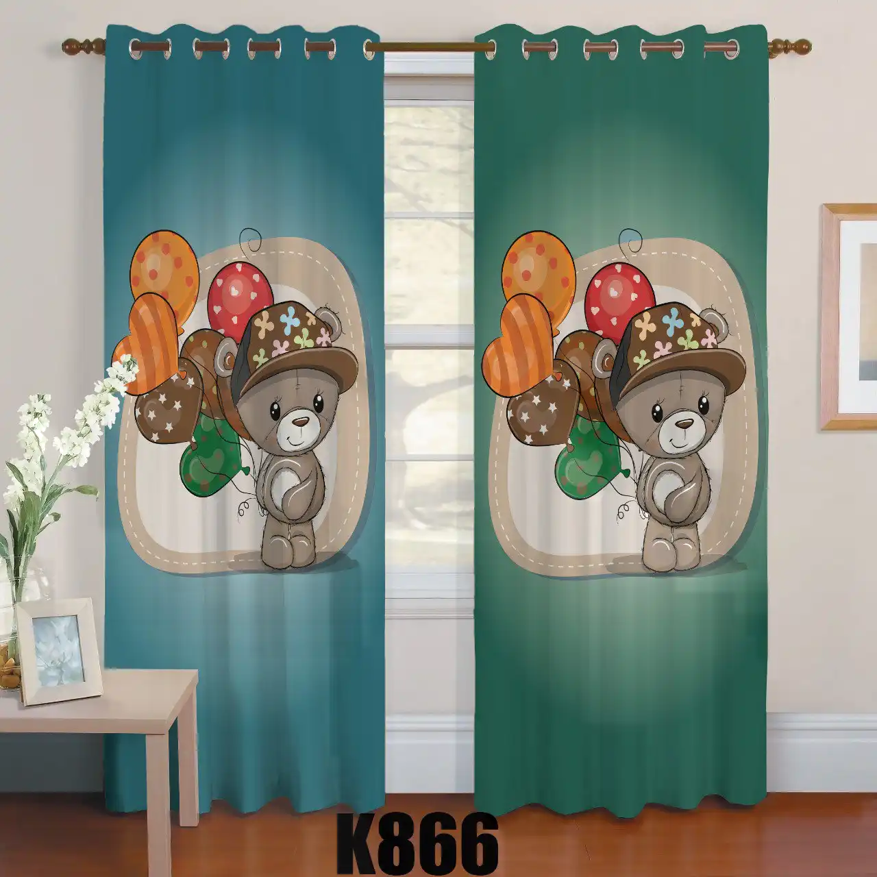 ست فرش پرده طرح خرس و بادکنک کدF447