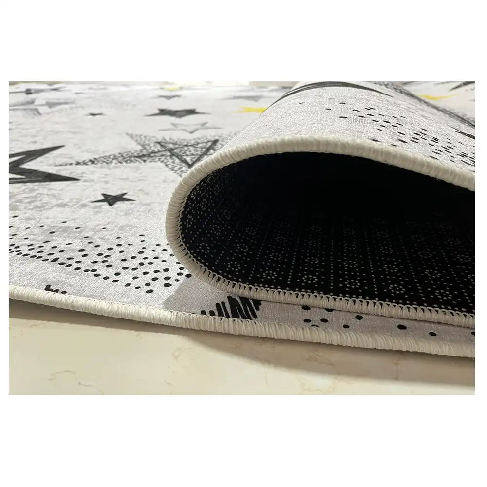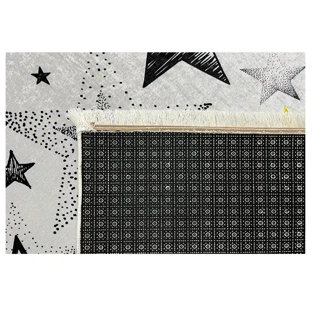فرشینه طرح ستاره ها کد R210 به صورت اختصاصی در سایز یک در یکونیم متری به سفارش مشتری انجام شده. این فرشینه از سه لایه تشکیل میشود: رویه آن جنس مخمل است، لایه میانی آن نمد فشرده شده و زیره آن چرم ضد لغزش است. حتی روی سرامیک و پارکت هم سر نمی خورد.