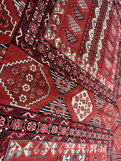 فرش ماشینی ترکمن 500 شانه طرح بلوچ کد B313 از کلکسیون بلوچ میباشد که با توجه به رنگ قرمز اناری و طراحی سبک سنتی، این طرح را به نمونه های مشابه دستبافت نزدیک کرده است.