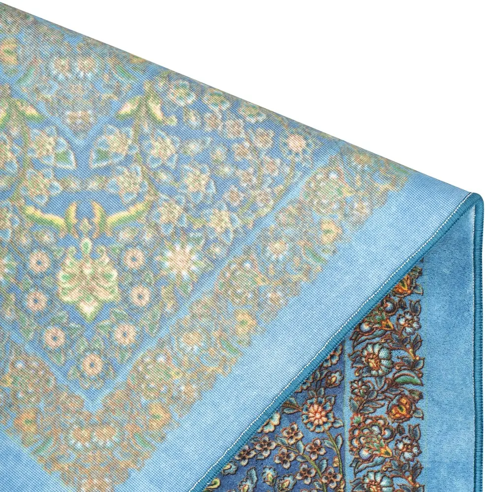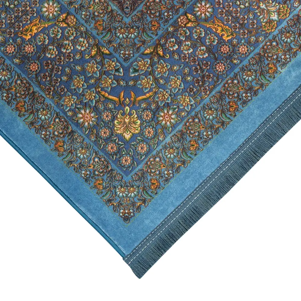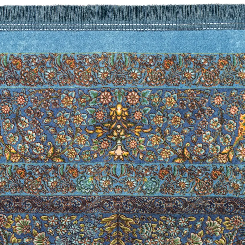 فرش محتشم طرح هلنا کد 25NH0000 آبی، معادل یک فرش دستباف ۷۷ رج است و همین موضوع باعث ظاهر بسیار ظریف و ریزبافت آن میشود.