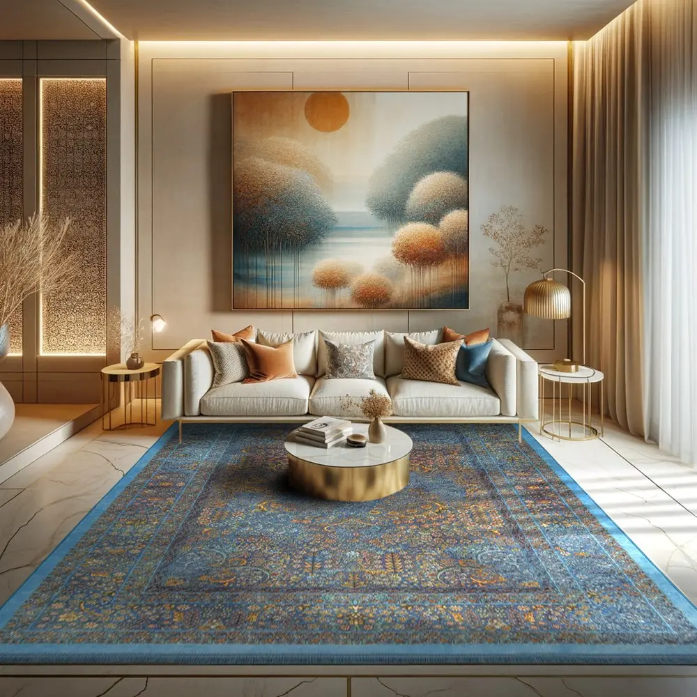 برای جذابتر شدن فضای خانه، بهتر است ابعاد فرش کمی کوچکتر از فضای قرارگیری انتخاب شود. این کار باعث میشود مبلمان کاملاً فرش را نپوشاند و محیط بازتر و چشمنوازتر دیده شود.