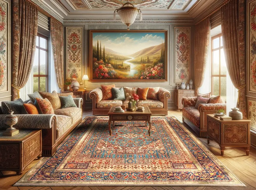 برای جذابتر شدن فضای خانه، بهتر است ابعاد فرش کمی کوچکتر از فضای قرارگیری انتخاب شود. این کار باعث میشود مبلمان کاملاً فرش را نپوشاند و محیط بازتر و چشمنوازتر دیده شود.