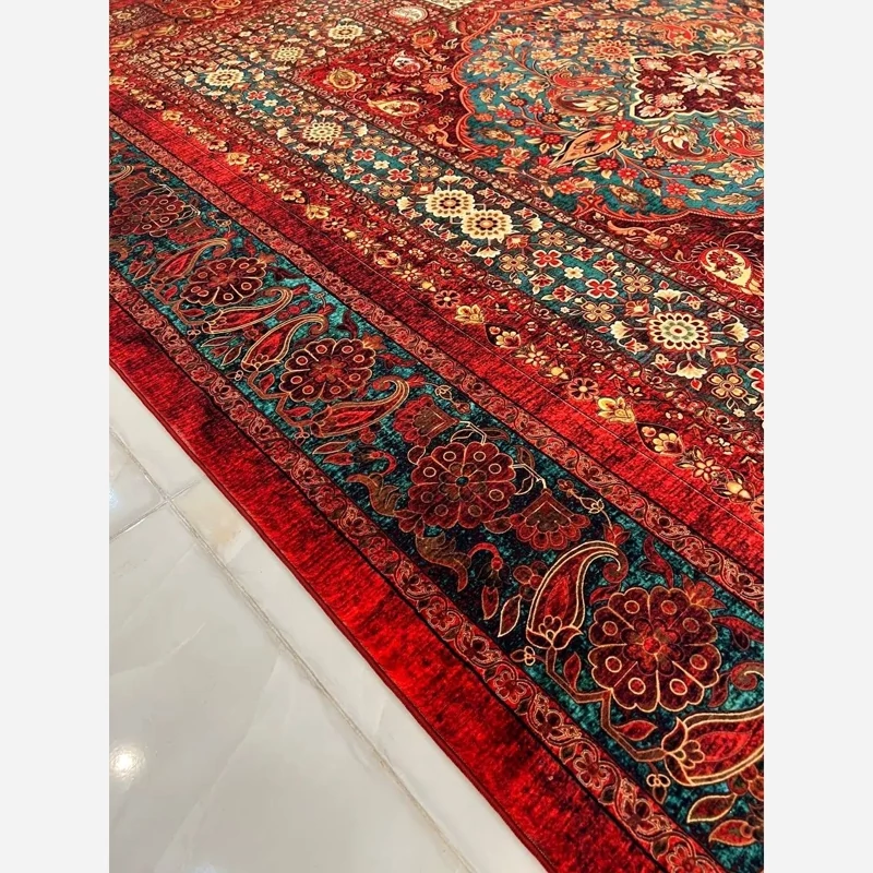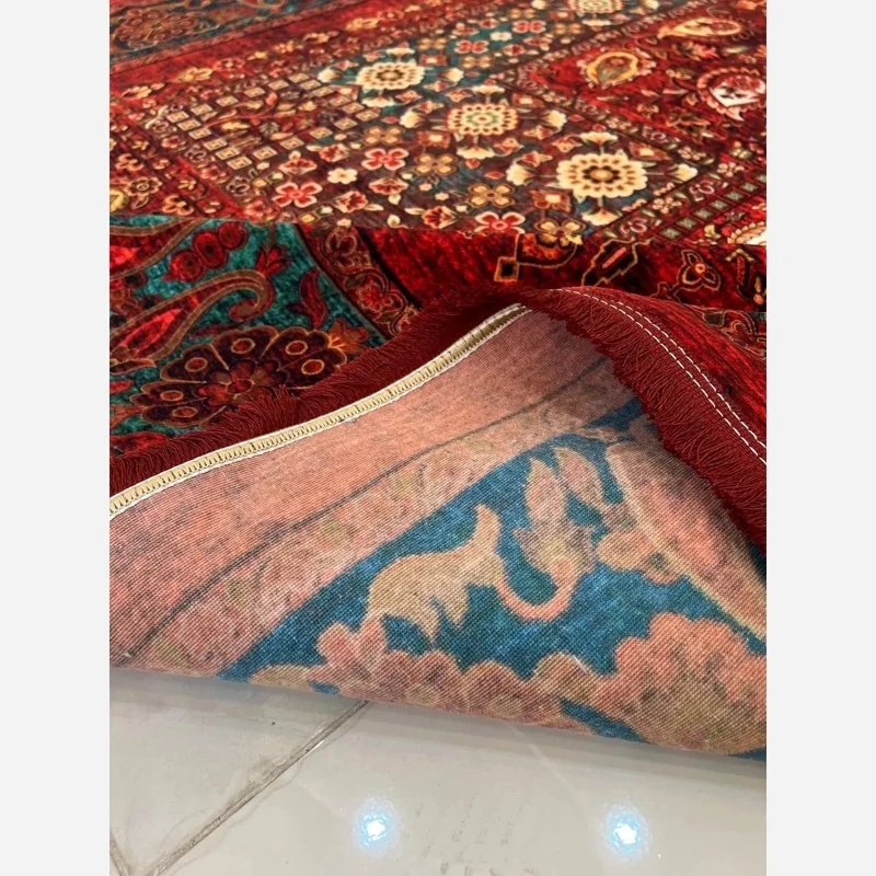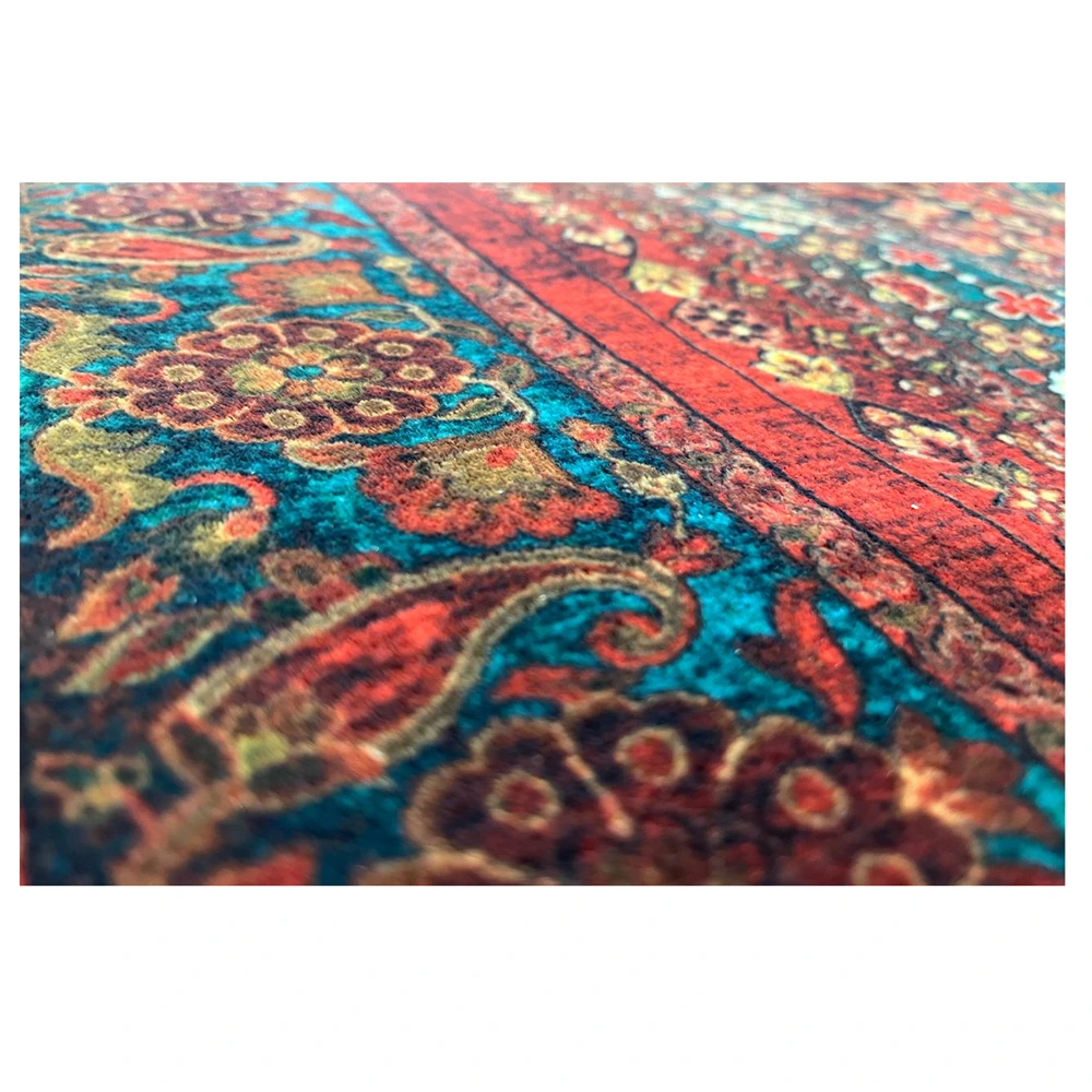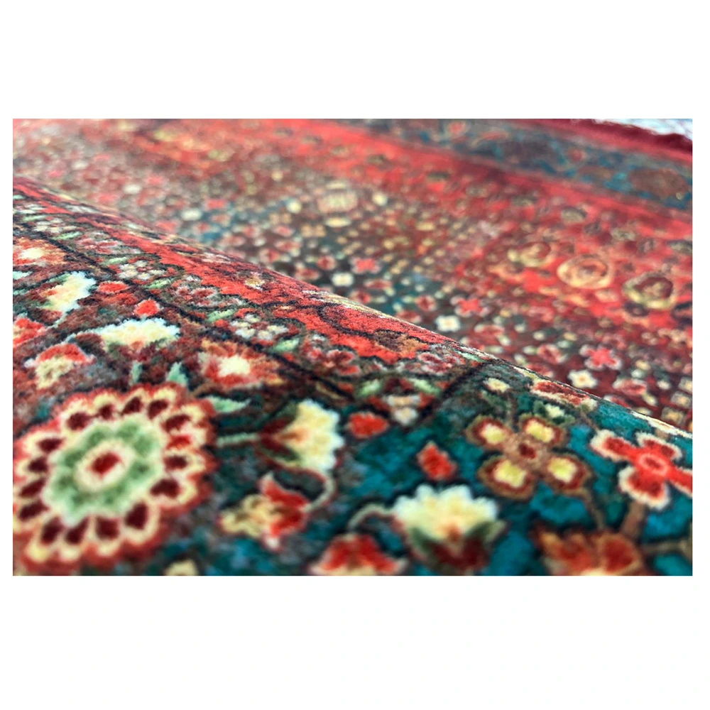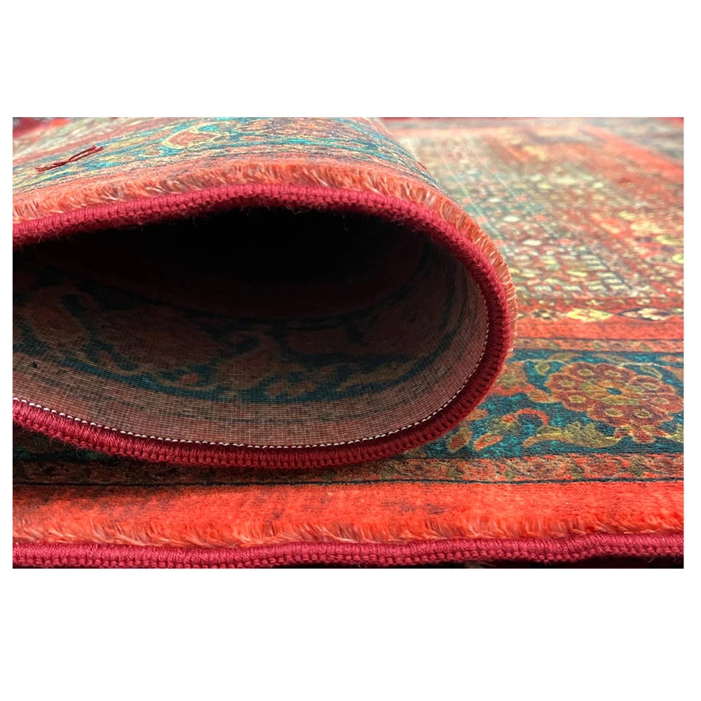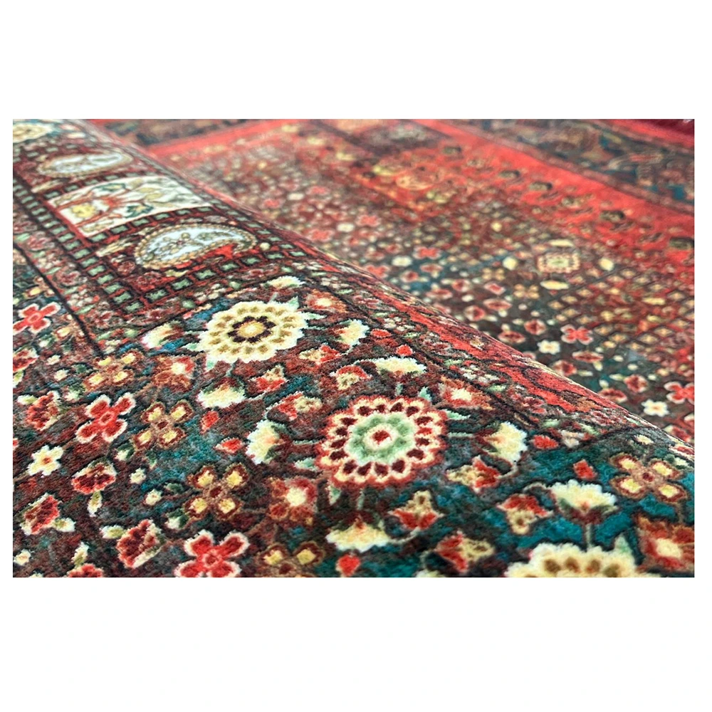 فرش محتشم طرح هلنا کد25NH0010 قرمز، معادل یک فرش دستباف ۷۷ رج است و همین موضوع باعث ظاهر بسیار ظریف و ریزبافت آن میشود.