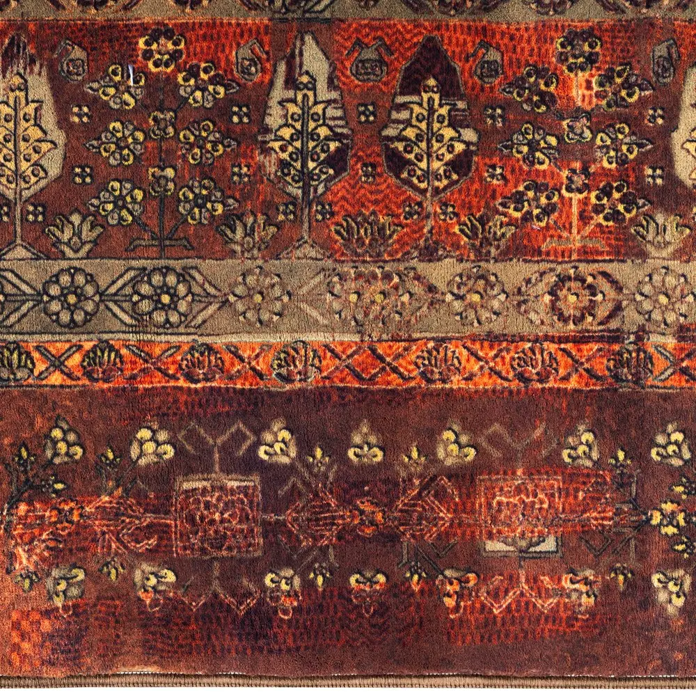 در بافت این فرش از نخ پلیاوژن هیتست شده استفاده شده است؛ الیافی بسیار مقاوم، بادوام و مناسب فرشهای ریزبافت. نخ پلیاوژن به دلیل ثبات بالا در برابر شستشو، حرارت و کوبیدگی، سالها بدون افت کیفیت باقی میماند. این فرش پس از شستشو دچار سفتی، تغییر فرم یا موجدار شدن نخواهد شد.