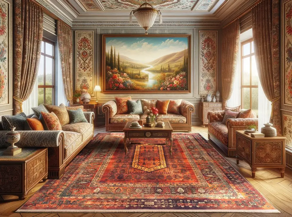 برای جذابتر شدن فضای خانه، بهتر است ابعاد فرش کمی کوچکتر از فضای قرارگیری انتخاب شود. این کار باعث میشود مبلمان کاملاً فرش را نپوشاند و محیط بازتر و چشمنوازتر دیده شود.