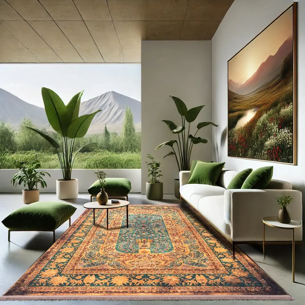 برای جذابتر شدن فضای خانه، بهتر است ابعاد فرش کمی کوچکتر از فضای قرارگیری انتخاب شود. این کار باعث میشود مبلمان کاملاً فرش را نپوشاند و محیط بازتر و چشمنوازتر دیده شود.