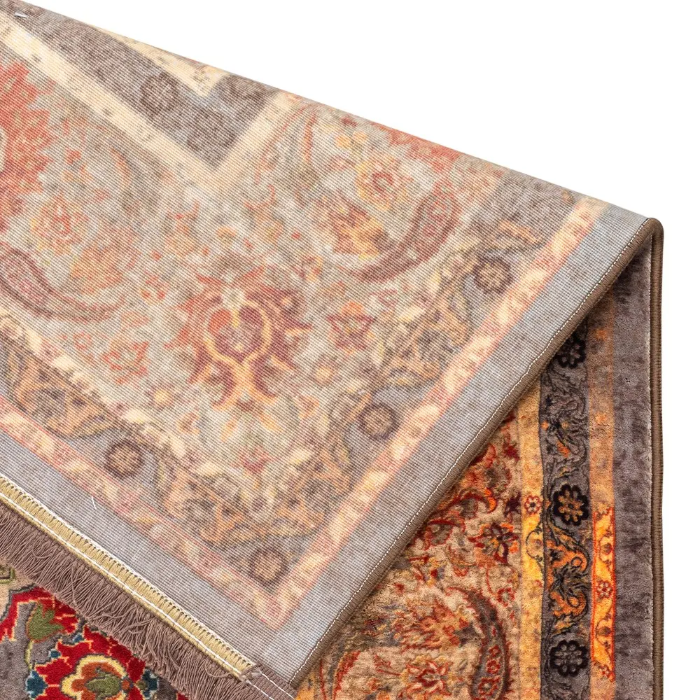 فرش محتشم طرح هلنا کد25NH0070 طوسی، معادل یک فرش دستباف ۷۷ رج است و همین موضوع باعث ظاهر بسیار ظریف و ریزبافت آن میشود.