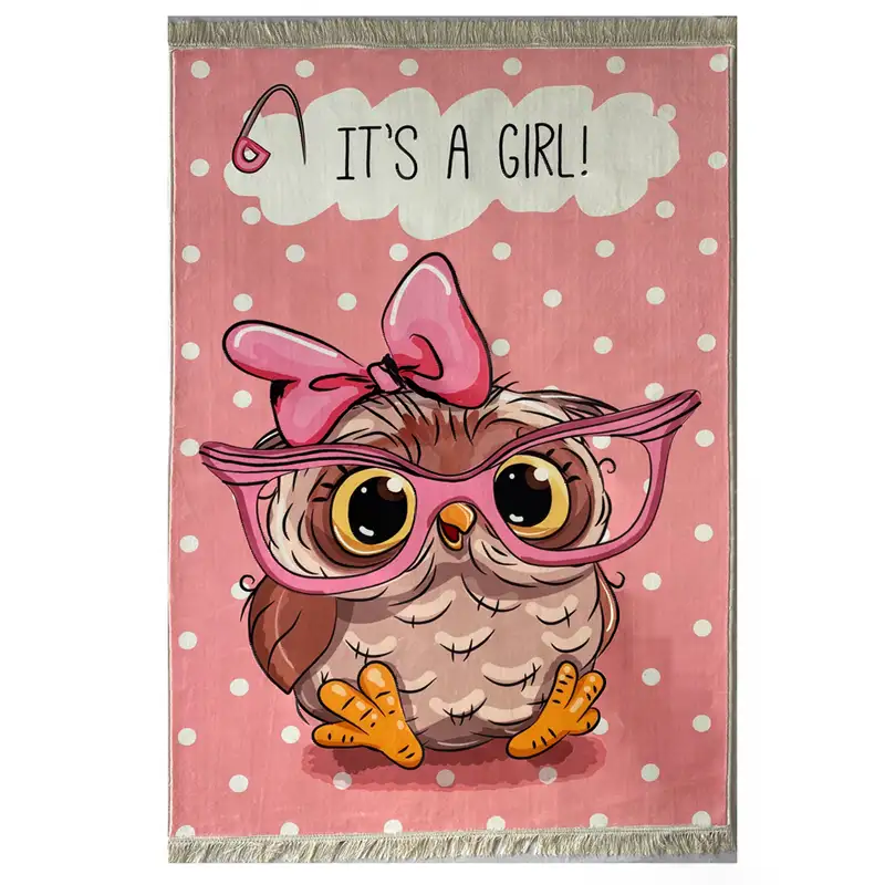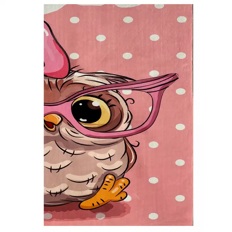 طرح جغد صورتی به صورت اختصاصی در سایز یک در یکونیم متری به سفارش مشتری انجام شده این فرش از نظر شانه ۱۰۰۰ و تراکم ۳۰۰۰ میباشد.
