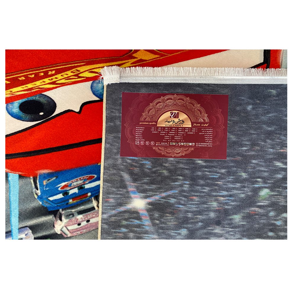 فرش کودک اختصاصی طرح مک کویین به صورت اختصاصی در سایز 4*3 به سفارش مشتری انجام شده این فرش از نظر شانه ۷۰۰ و تراکم ۳۳۰۰ میباشد.