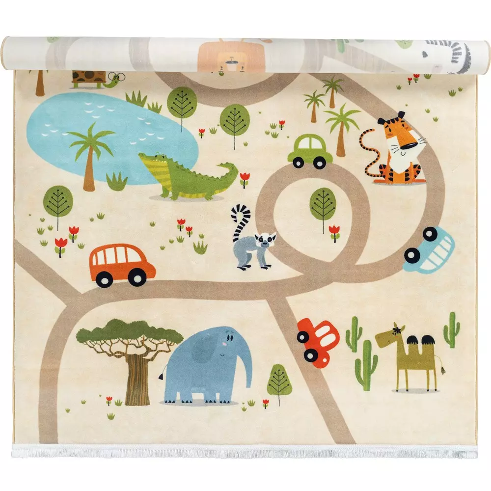 فرش کودک جاده ماجراجویی کد 101291 مشخص است این طرح فقط مناسب اتاق کودک میباشد و برای دیگر قسمت های منزل مناسب نمیباشد.