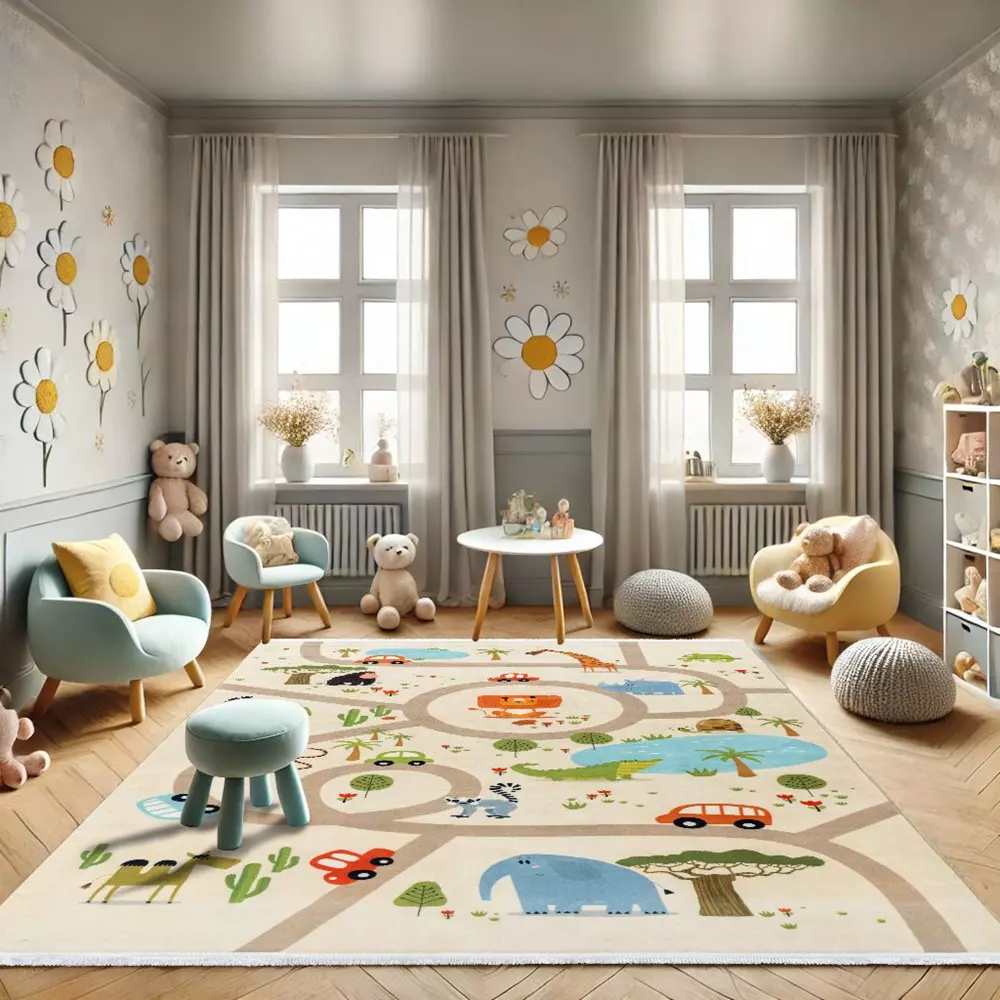 فرش اتاق کودک از این جهت که کودکان بیشتر روی فرش هستند و بازی میکنند و ارتباط مستقیمی با فرش دارند