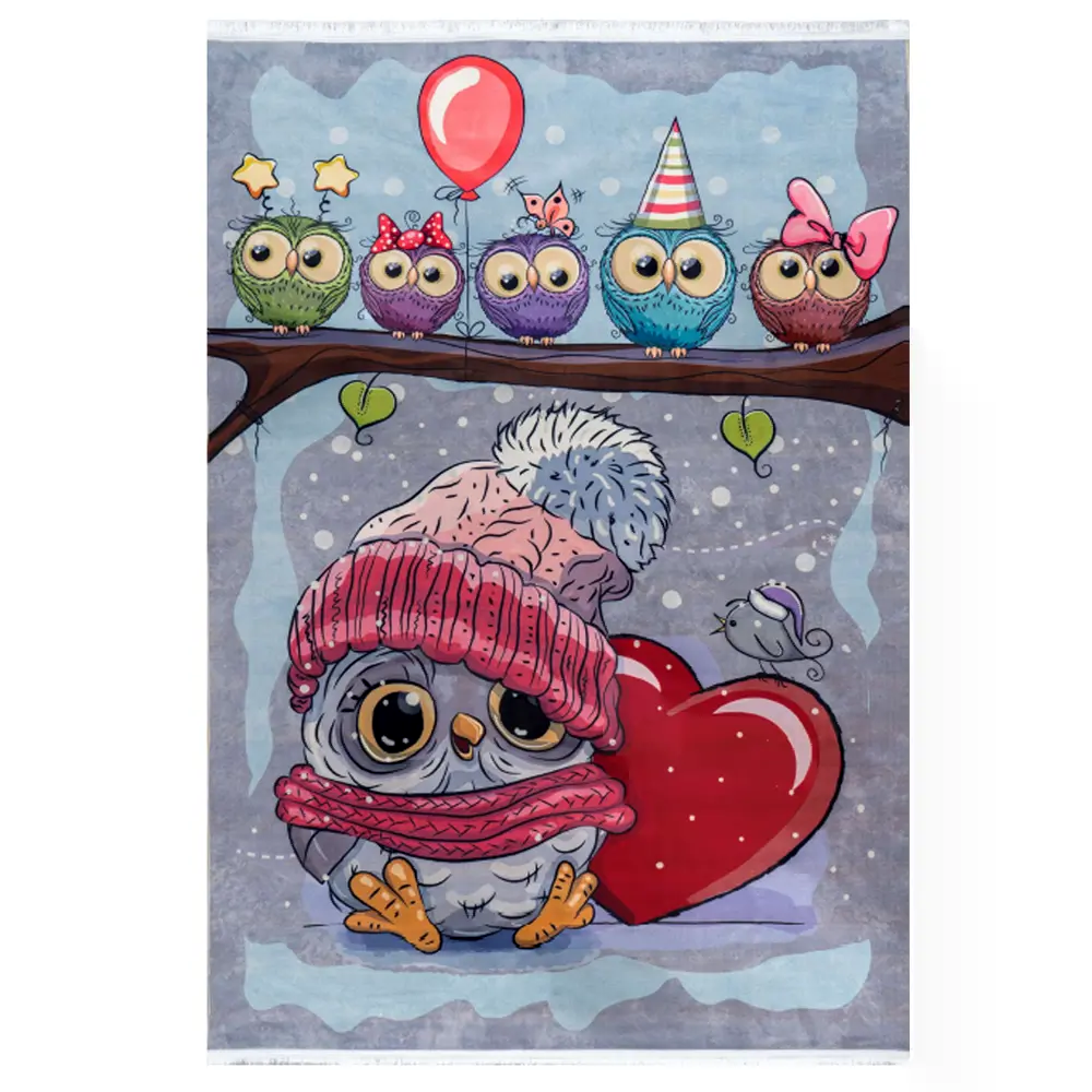 فرش کودک جغد کد101205 مشخص است این طرح فقط مناسب اتاق کودک میباشد و برای دیگر قسمت های منزل مناسب نمیباشد.