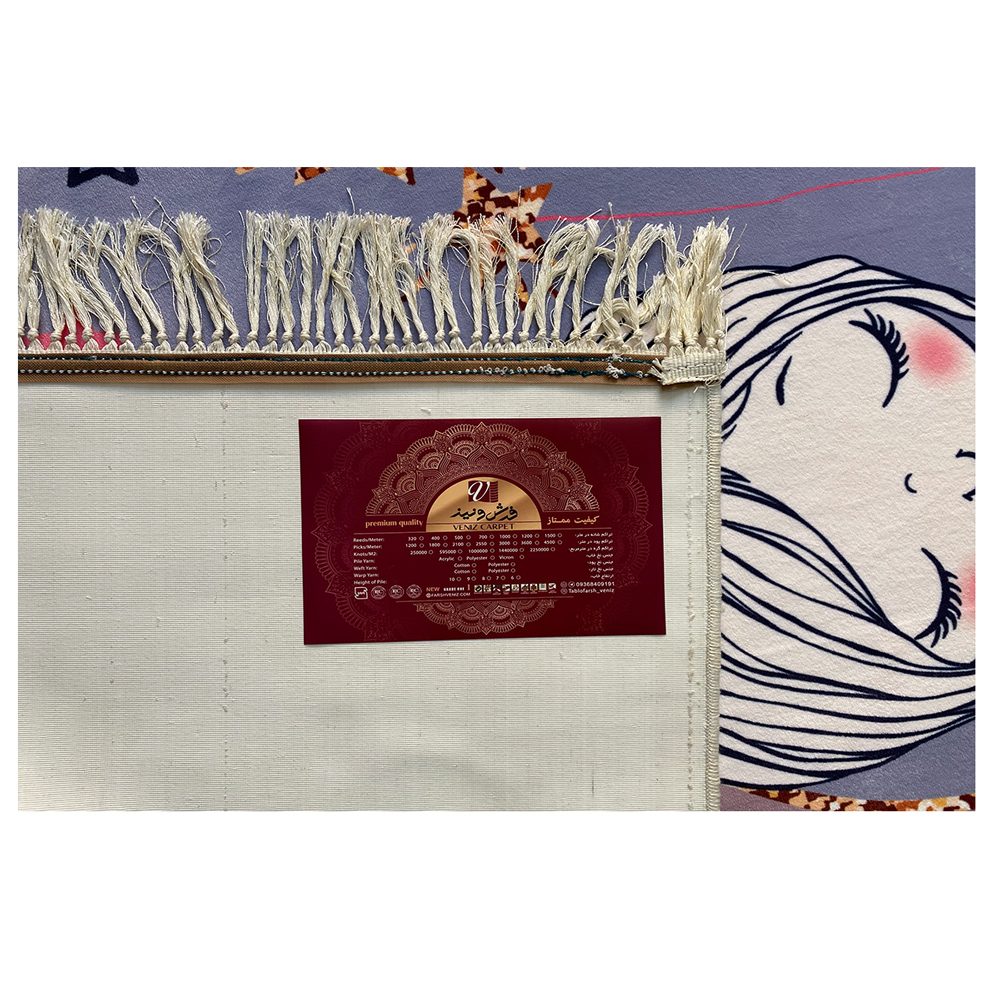 فرش کودک دختر و ماه کد 1079 به صورت اختصاصی در سایز یک در یکونیم متری به سفارش مشتری انجام شده این فرش از نظر شانه ۱۰۰۰ و تراکم ۳۰۰۰ میباشد.