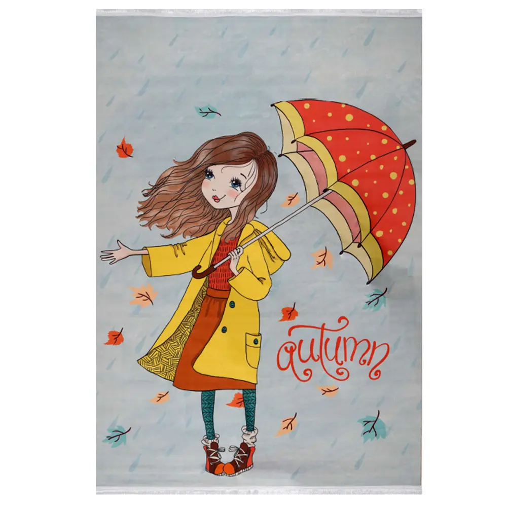 فرش کودک دختر و چتر کد101215 مشخص است این طرح فقط مناسب اتاق کودک میباشد و برای دیگر قسمت های منزل مناسب نمیباشد.
