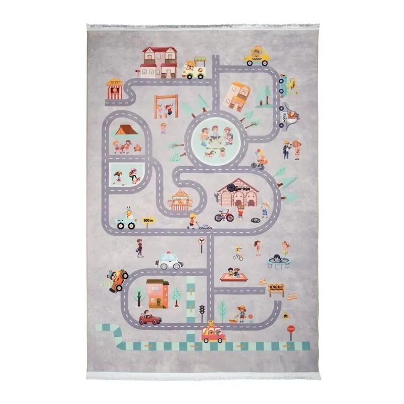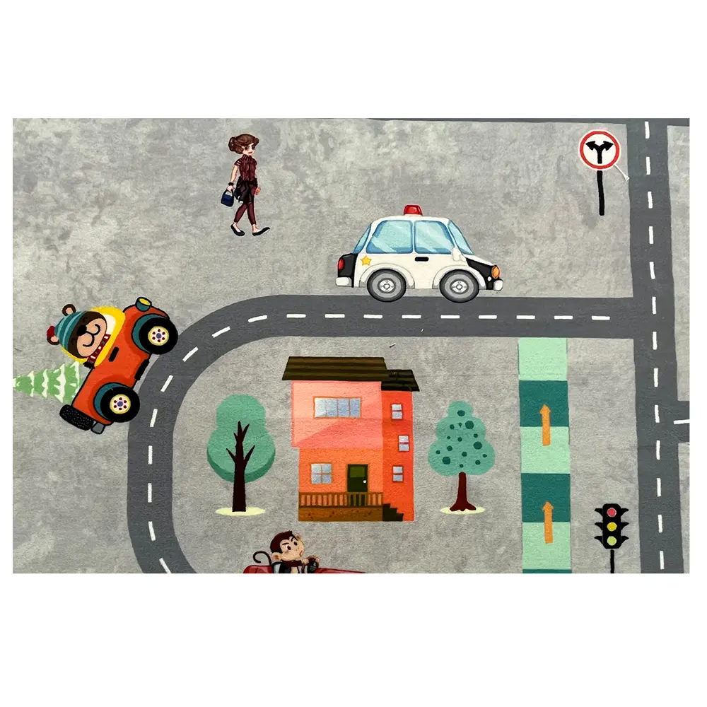فرش کودک شهروندان کوچولو کد 101270 مشخص است این طرح فقط مناسب اتاق کودک میباشد و برای دیگر قسمت های منزل مناسب نمیباشد.