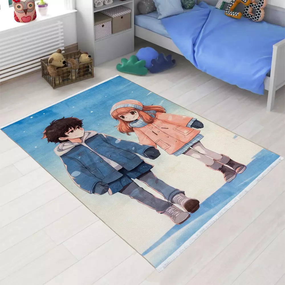 فرش کودک طرح دختر و پسر کد 25KK0070 مشخص است این طرح فقط مناسب اتاق کودک میباشد و برای دیگر قسمت های منزل مناسب نمیباشد.