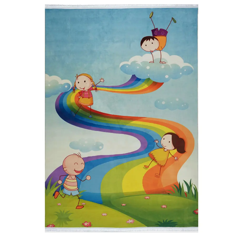 فرش کودک طرح رنگین کمان کد 100247 مشخص است این طرح فقط مناسب اتاق کودک میباشد و برای دیگر قسمت های منزل مناسب نمیباشد.