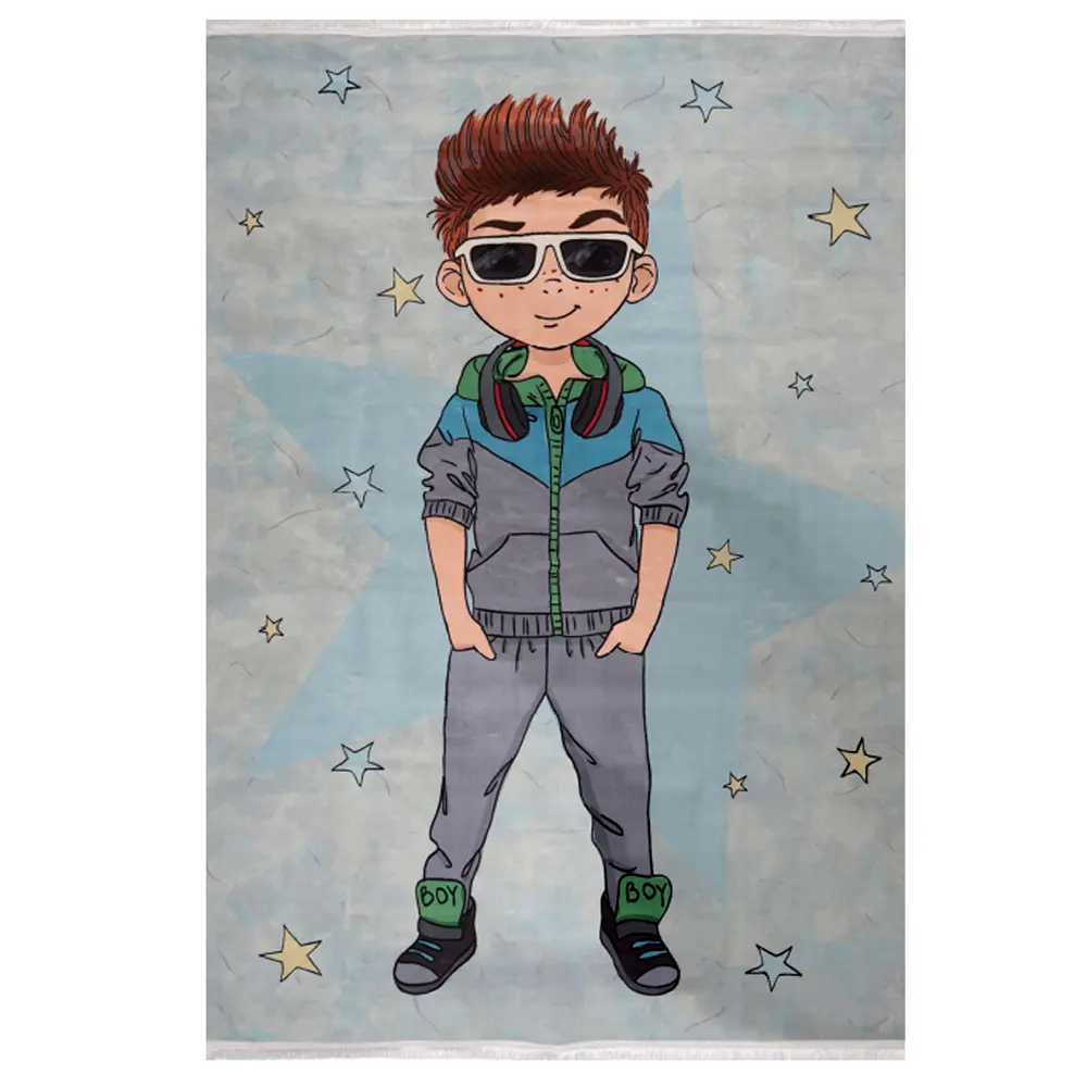 فرش کودک طرح پسر کد101207 مشخص است این طرح فقط مناسب اتاق کودک میباشد و برای دیگر قسمت های منزل مناسب نمیباشد.