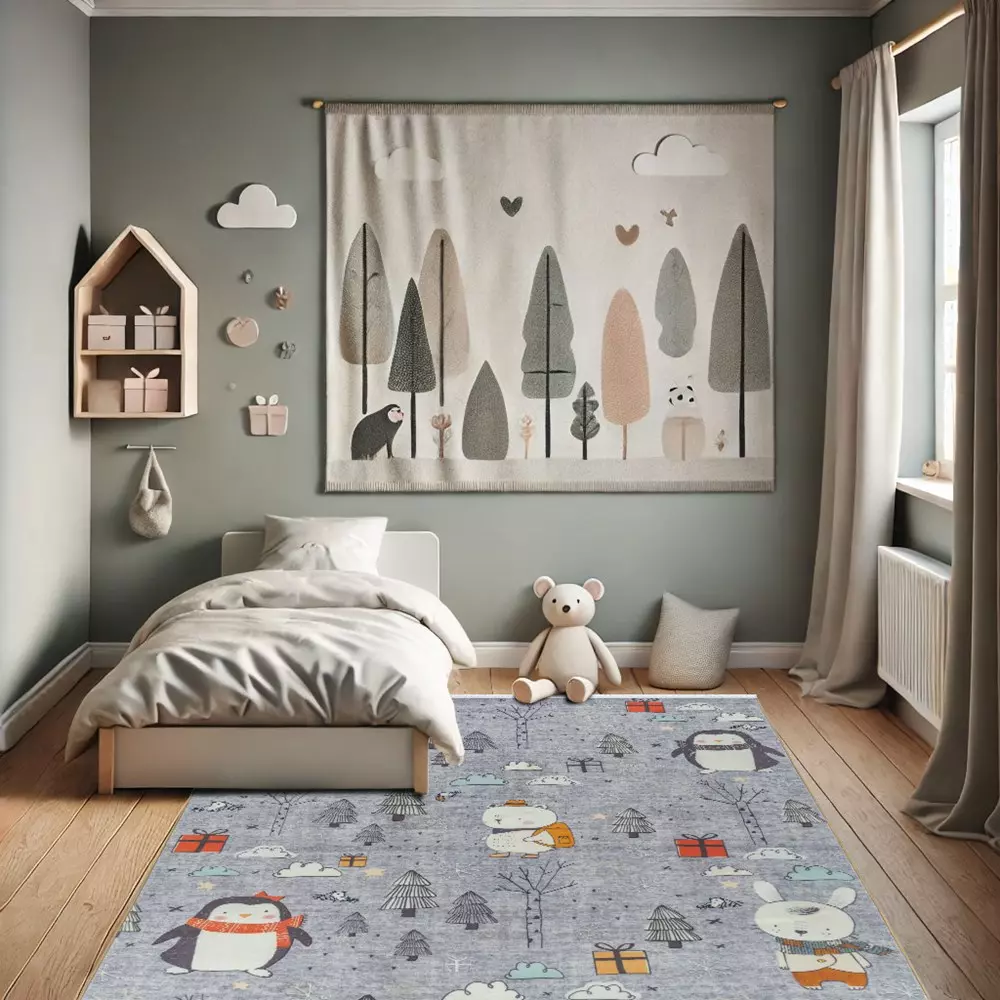فرش کودک ماجراجویان جنگل کد 25KM0180 مشخص است این طرح فقط مناسب اتاق کودک میباشد و برای دیگر قسمت های منزل مناسب نمیباشد.