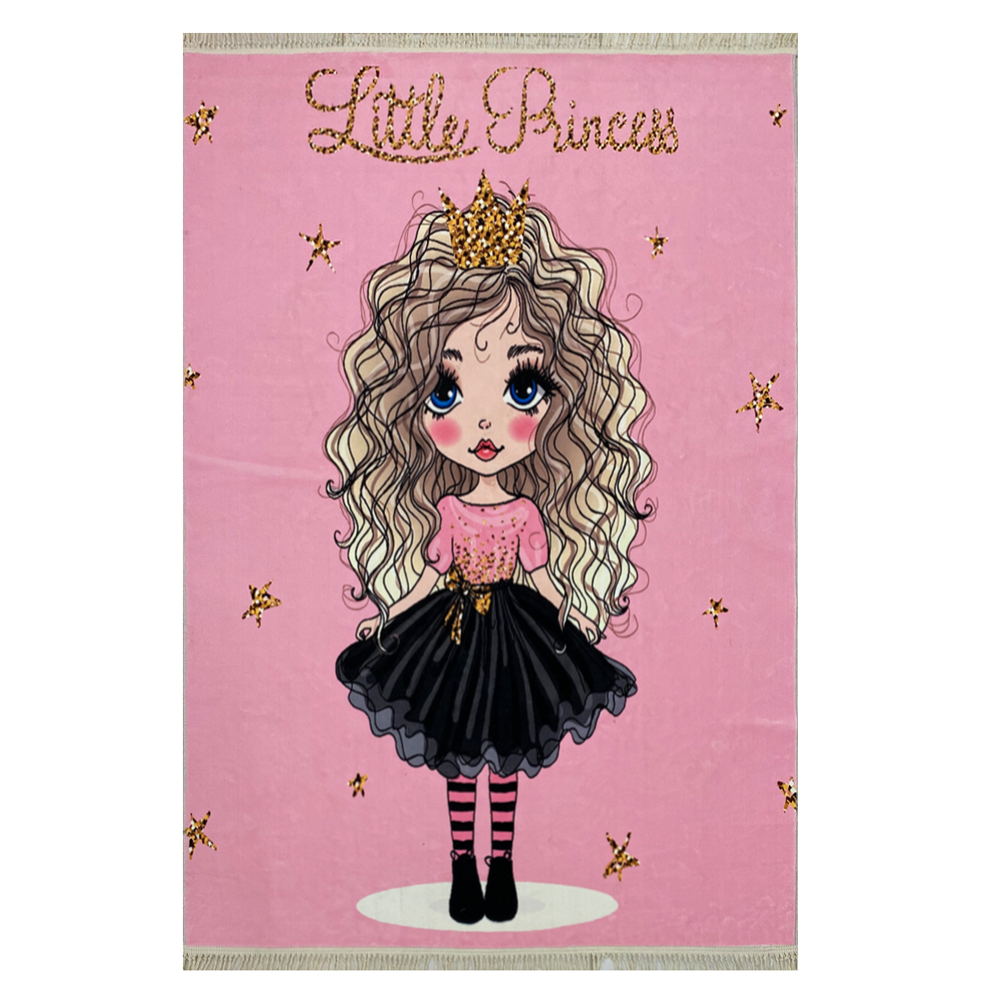 فرش کودک چاپی دخترمومو فرفری صورتی کد1046 :