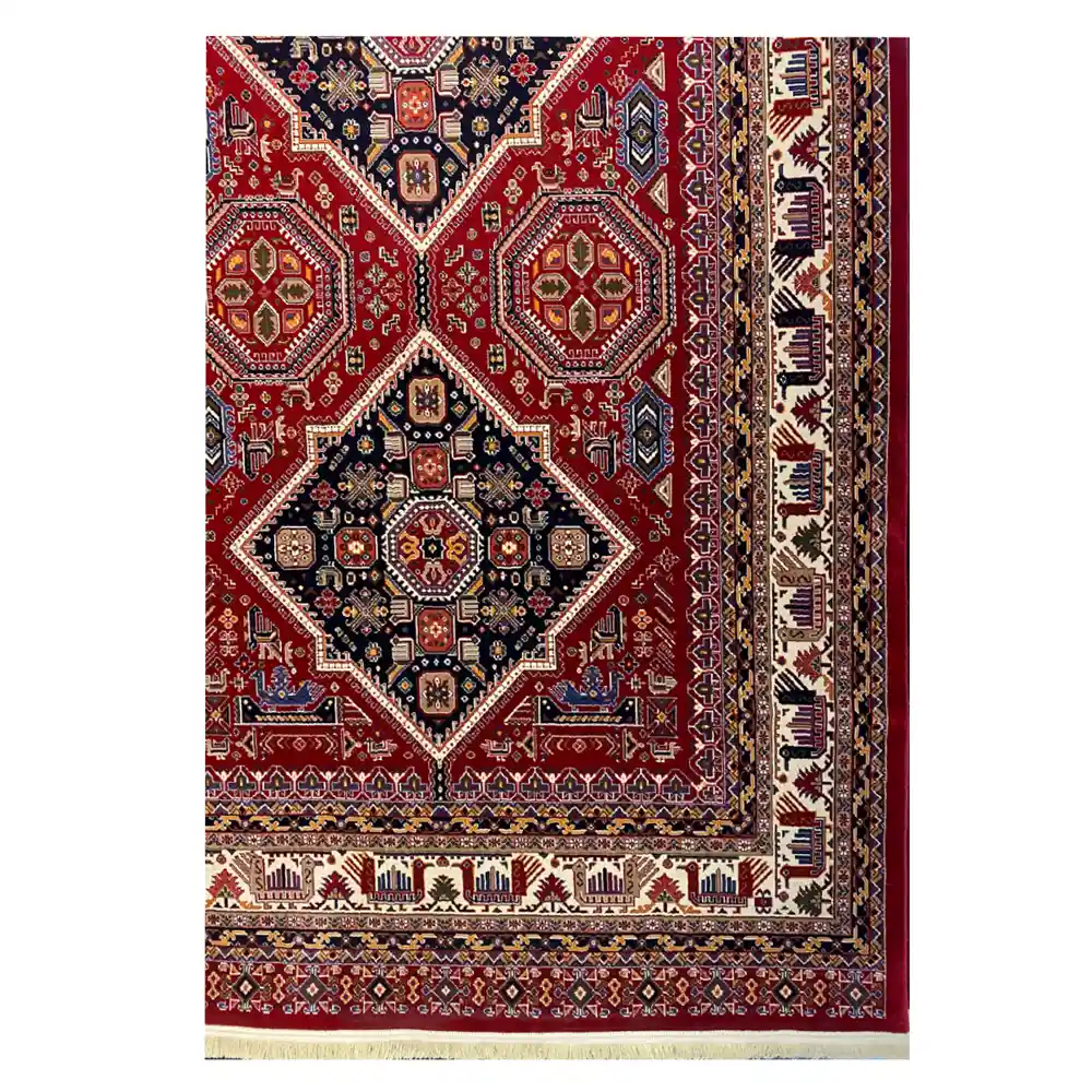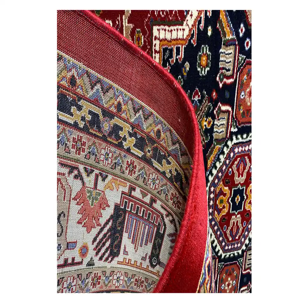رنگ قرمز اناری و طراحی سبک سنتی فرش های بلوچی ماشینی را به نمونه های مشابه دستبافت نزدیک کرده است. اصالت فرش های بلوچی به عشایر بلوچ که در مرز های ایران، افغانستان و پاکستان زندگی میکنند برمیگردد. این عشایر در فرش ها همیشه از رنگ های زنده و گرم استفاده میکنند و از نظر طراحی الگوهایی شاد و ساده دارند.