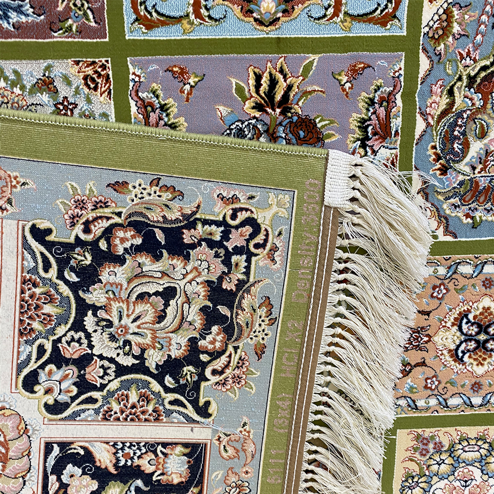 که ضرب این اعداد تراکم ۳۶۰۰ به دست میاید.فرش ۱۲۰۰ شانه زمینه سبز کدSH-1227